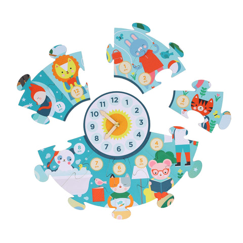 BRIGHTLY ILLUSTRATED LEARNING CLOCK – This jigsaw puzzle features a bright, bold, detailed illustration that offers plenty of things to spot once the clock puzzle is complete. Building puzzles promotes hand-eye coordination and development of problem-solving skills.